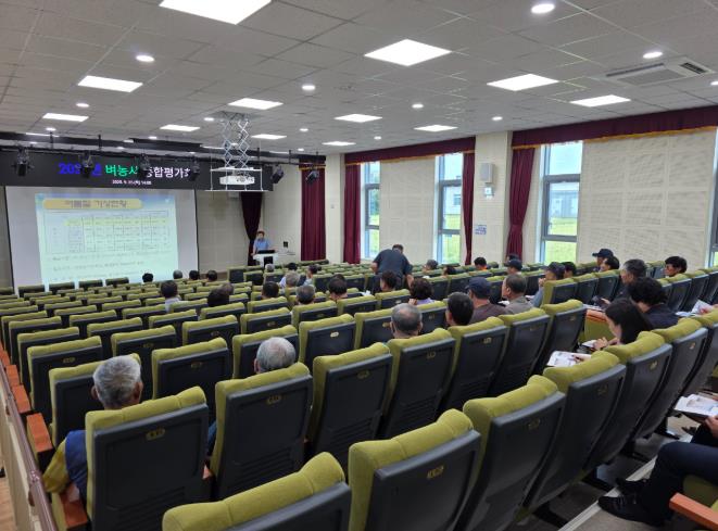 [뉴스앤톡] 군산시농업기술센터는 지난 25일 3개 벼농사 시범사업 단지·쌀 채종포단지·선도농업인·농업인상담소장 등 80여 명이 참석한 가운데 ‘2025년 벼농사 종합 평가회’를 농업인평생학습센터 강당에서 개최했다.