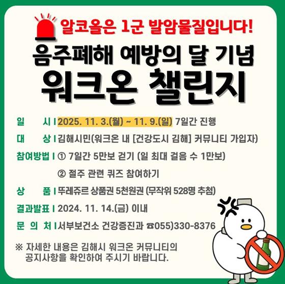 | ▲ 김해서부보건소, 11월 ‘음주폐해 예방의 달’ 맞이 걷기 챌린지 운영 |