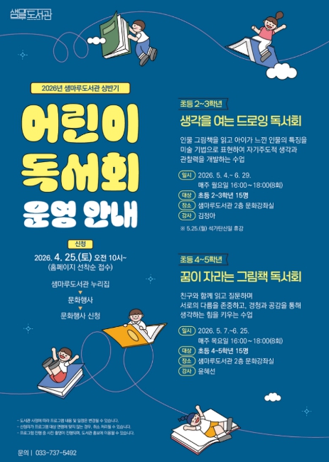 [뉴스앤톡] 원주시 샘마루도서관은 오는 5월부터 6월까지 관내 어린이를 대상으로 ‘상반기 어린이 독서회’을 운영한다.