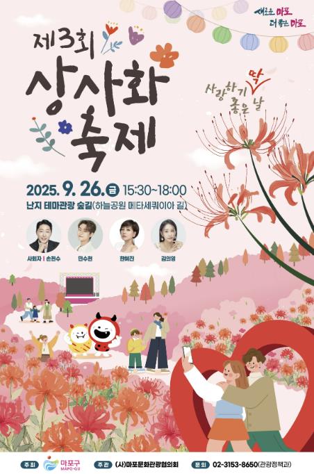 [뉴스앤톡] 마포구는 9월 26일 난지 테마관광 숲길에서 ‘사랑하기 딱 좋은 날’이라는 주제로 (사)마포문화관광협의회 주관 ‘제3회 마포구 상사화 축제’를 개최한다.