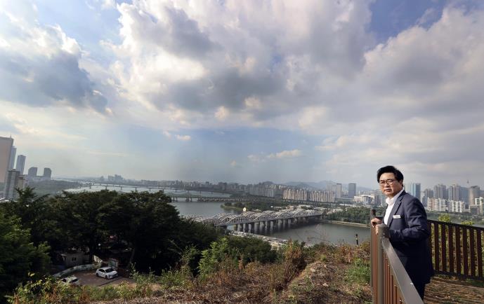 | ▲ 박일하 동작구청장이 지난 8월 용양봉저정 공원 전망대에서 안전펜스를 점검하고 있다. |