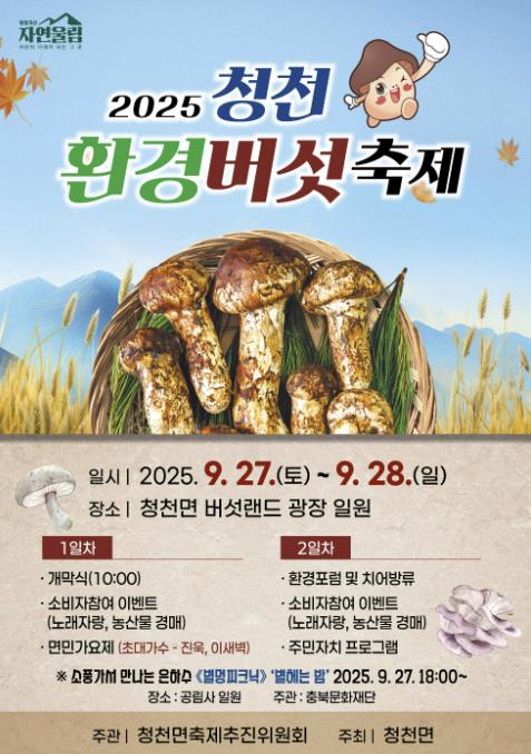 괴산군 청천면, '2025 청천환경버섯축제' 27~28일 개최