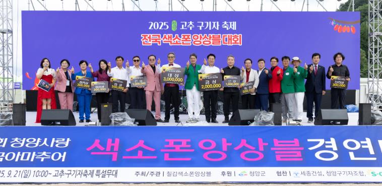 [뉴스앤톡] 2025 청양고추구기자축제 무대에서 지난 20일과 21일 열린 제6회 청양사랑 전국아마추어색소폰앙상블경연대회가 전국 각지에서 모인 아마추어 연주자들이 열띤 경연을 펼친 가운데 성황리에 마무리됐다.