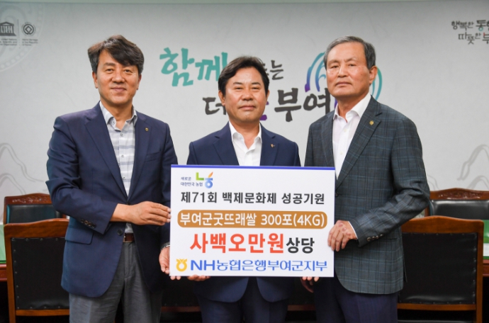 류경환 지부장은 “올해 71회를 맞이하는 백제문화제는 부여군민의 자긍심을 드높이는 의미 깊은 행사”라며, “군민들의 적극적인 참여와 기관들의 협력이 어우러져 성공적인 축제가 되길 바라며, 이번 기부금이 작게나마 힘이 되기를 바란다.”라고 전했다.