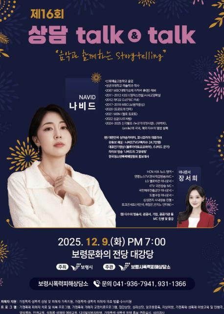 [뉴스앤톡] 보령시는 지난 9일 보령문화의전당 대강당에서 음악과 함께하는 스토리텔링 ‘제16회 상담 talk&talk’ 행사를 개최했다고 밝혔다.
