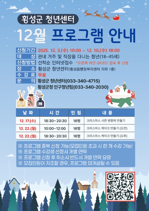 횡성군 청년센터 12월 프로그램 수강생 모집