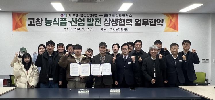 [뉴스앤톡] (재)고창식품산업연구원과 고창청년벤처스가 지난 10일 저녁 고창군농업인회관에서 고창군의 지속 가능한 발전과 청년 창업 생태계 활성화를 위한 업무협약(MOU)을 체결했다고 밝혔다.