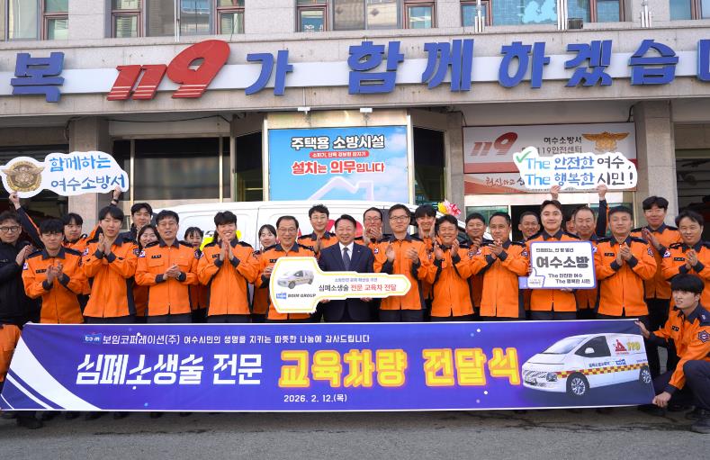 [뉴스앤톡] 여수소방서는 2월 12일, 보임그룹 한문선 회장의 기부로 마련된 심폐소생술 교육차량 전달식을 개최했다.