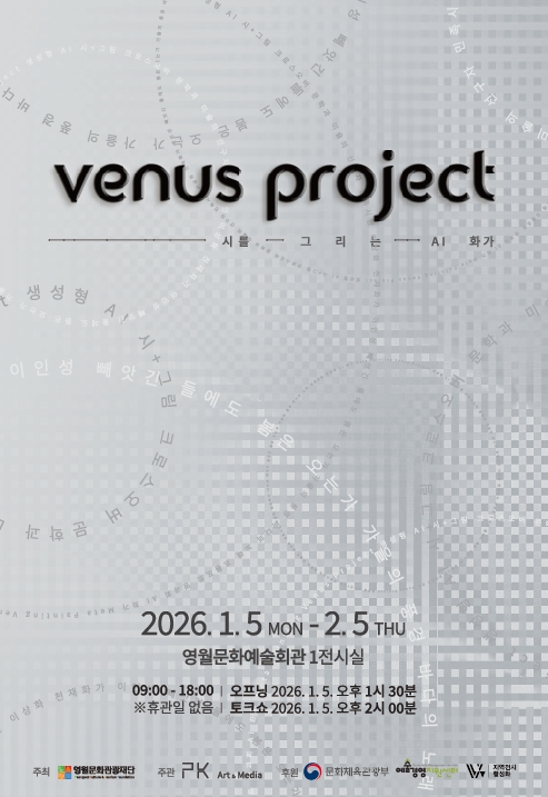 [뉴스앤톡] (재)영월문화관광재단은 2026년 1월 5일부터 2월 5일까지 영월문화예술회관 제1전시실에서 생성형 AI 기반 디지털 시각예술전 'Venus Project'를 개최한다고 밝혔다.