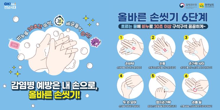 이에 따라 전남도는 3월부터 12월까지 도민을 대상으로 손 씻기 실천율을 높이기 위한 다양한 홍보·교육 사업을 추진한다.