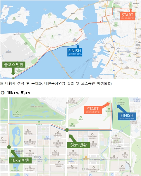 특히 풀코스는 인천의 랜드마크인 청라하늘대교를 통과하는 편도 코스 도입을 검토 중이다.