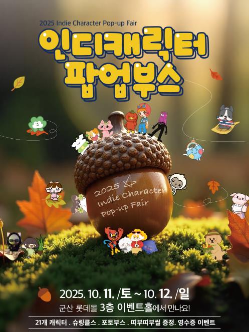 [뉴스앤톡] 군산시 청년뜰 창업센터가 캐릭터 분야 창업가와 예비창업가 의 제품 홍보 및 판로개척을 지원하는 ‘롯데몰 연계 인디캐릭터 팝업부스 지원사업’을 오는 10월 11일부터 12일까지 진행한다.