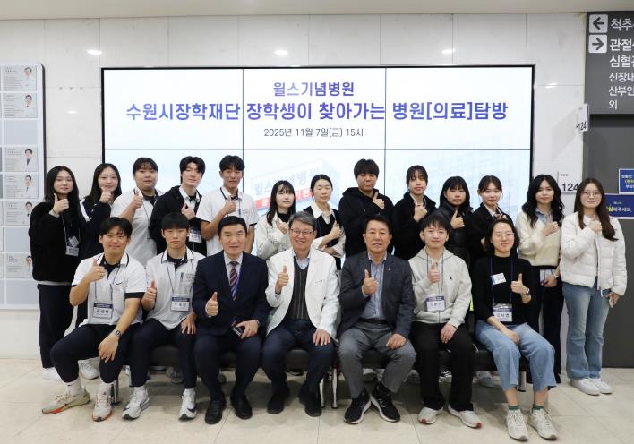 [뉴스앤톡] 수원시장학재단은 7일 윌스기념병원 인공신장센터 인봉홀에서 청소년·청년 장학생을 대상으로 ‘2025 장학생이 찾아가는 기업(의료)탐방’을 운영했다. 고등학생과 대학생 장학생 20명, 장학재단 이사 등이 함께했다.