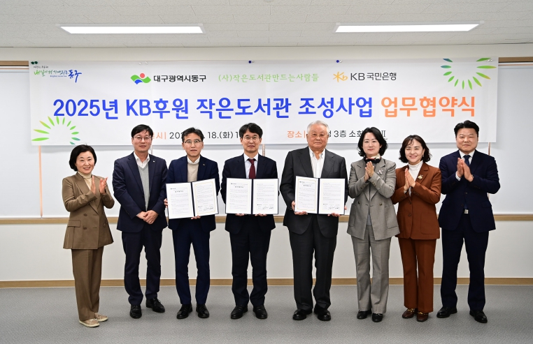 [뉴스앤톡] 대구 동구청은 지난 18일, KB은행, (사)작은도서관만드는사람들과 ‘작은도서관 조성사업’을 위한 업무협약을 체결했다.