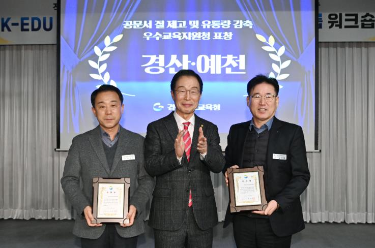 [뉴스앤톡] 경북교육청은 2025년 학교로 발송하는 공문서의 유통량 감축과 질적 개선에 이바지한 우수교육지원청으로 경산교육지원청과 예천교육지원청을 선정하고 교육감 표창을 수여했다고 30일 밝혔다.