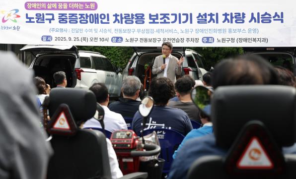 김씨의 편지 낭독에 장애인단체와 복지시설 관계자 등 100여 명이 모인 행사장은 금세 훈훈한 온기와 감동이 전해졌다. 지난해 개장한 노원구 장애인 전동보장구운전연습장 일원에서 열린 이번 행사는, 장애인들의 전동보장구 무상점검과 세척 서비스도 진행되며 성황리에 개최됐다.