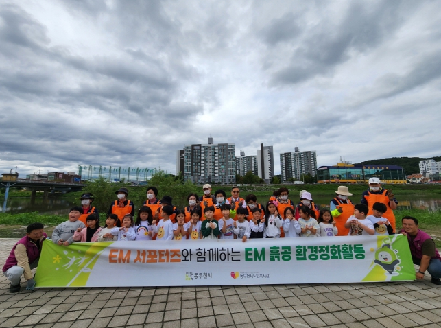 [뉴스앤톡] 동두천시는 지난 14일 신천교 부근에서 동두천시노인복지관 EM서포터즈 어르신 15명과 관내 좋은열매어린이집 원아 18명이 참여한 가운데 ‘EM 흙공 던지기’ 행사를 진행했다.