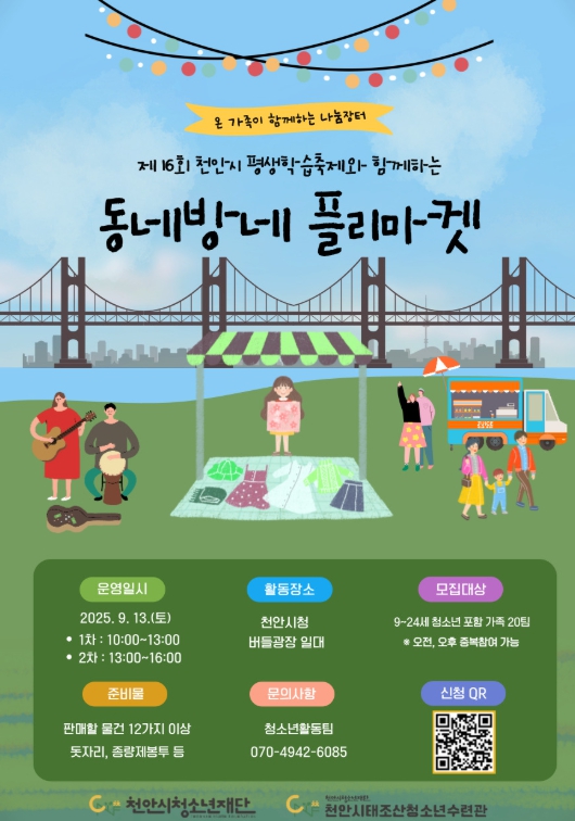 [뉴스앤톡] (재)천안시청소년재단 천안시태조산청소년수련관은 ‘동네방네 플리마켓’ 참가자를 선착순 모집한다고 2일 밝혔다.