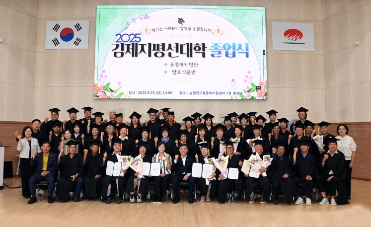 [뉴스앤톡] 김제시는 지난 25일 농업인교육문화지원센터에서 '2025학년도 김제시지평선대학 졸업식'을 80여명이 참여한 가운데 개최했다고 밝혔다