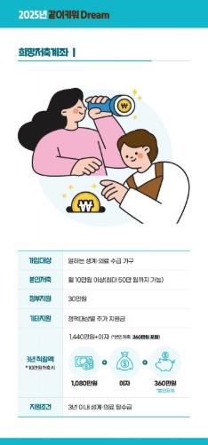 대상자는 ‘일하는 생계·의료 수급자’로 3년간 매월 10만 원 이상 저축하면 정부가 근로소득장려금으로 월 30만 원씩을 지원해준다.