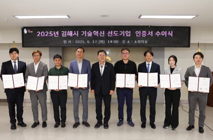 | ▲ 2025년 김해시 기술혁신 선도기업 인증서 수여 |