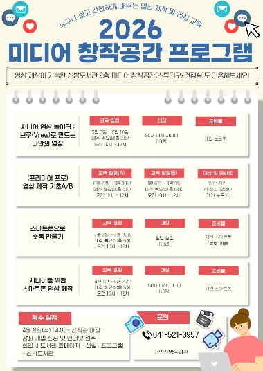 | ▲ 1. 천안신방도서관 ‘미디어 창작공간 프로그램’ 홍보문. |