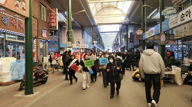 [뉴스앤톡] 봉화군은 설 명절을 앞둔 2월 12일 봉화상설시장 일대에서 봉화군여성단체협의회 회원 40여명과 함께‘5대 폭력 예방 합동캠페인’을 진행했다. 지난 9일에는 억지춘양시장에서 첫 캠페인이 진행된 바 있으며, 이번 활동은 명절 기간 전통시장을 이용하는 주민들을 대상으로 맞춤형 홍보의 일환으로 기획됐다.