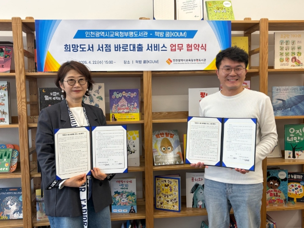 [뉴스앤톡] 인천광역시교육청부평도서관은 지난 22일 '책방 쿰'과 ‘희망도서 서점 바로대출 서비스’ 업무협약을 체결했다.