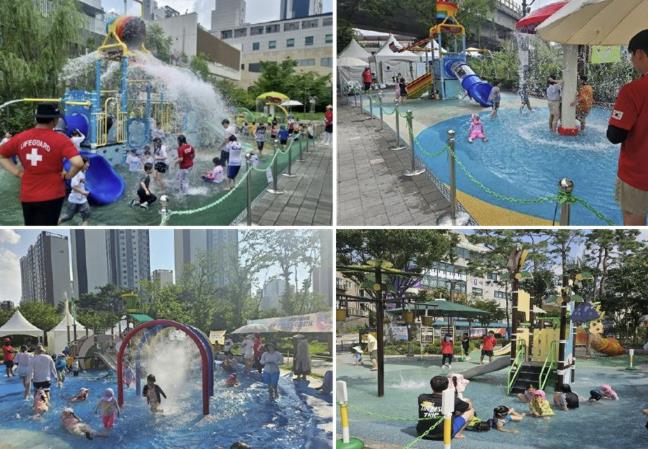 ▲ 지난해 어린이들이 가재울어린이공원, 문화촌어린이공원, 은가어린이공원, 중앙근린공원 물놀이터(왼쪽 위부터 시계 방향)를 이용하는 모습 |