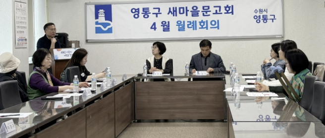 회의에서는 ▲수원시 평생학습관 2분기 프로그램 수강생 모집 ▲찾아가는 우산수리센터 운영 ▲청개구리 SPEEC 원어민 화상영어 모집 ▲공영주차장 승용차 5부제 등 시·구정 주요 정책 홍보 사항을 공유하고, 새마을문고가 주민 생활지원과 정보 제공의 소통 창구로서 역할을 다할 수 있도록 노력하기로 의견을 모았다. 특히, 각 동 문고 현안 점검을 통해 노후 도서 정비와 이용자 수요를 반영한 도서 구매 등 장서 관리의 효율성 제고 방안이 중점적으로 논의됐다.