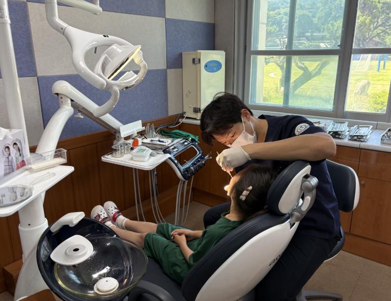 | ▲ 사업 대상 학생이 치과 진료를 받고 있다. |