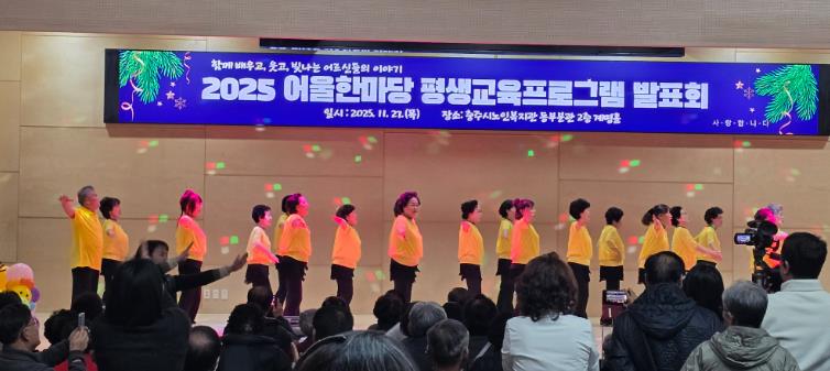 [뉴스앤톡] 충주시노인복지관은 지난 27일 동부분관에서 노인들의 1년간 학습 성과를 나누고 지역사회와 함께하는 화합의 장인 ‘2025 어울한마당 평생교육프로그램 발표회’를 성황리에 개최했다고 밝혔다.