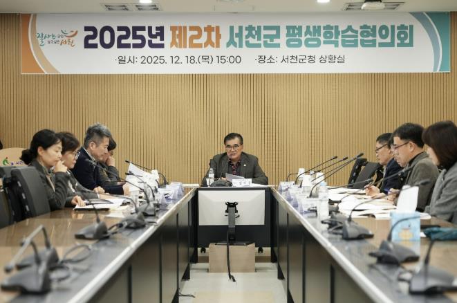 이번 협의회에는 서천군 평생교육 관련 유관기관·단체장과 군청 관계 부서장들이 참석한 가운데 ▲2025년 서천군 평생학습 중장기 종합발전계획 수립 연구 결과 ▲서천군 장애인 평생학습 참여 실태 및 요구조사 결과 ▲제13회 서천군 평생학습한마당 추진 결과 등에 대한 보고가 이뤄졌으며, 이에 대한 다양한 의견을 나누는 시간을 가졌다.