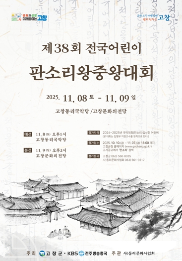 [뉴스앤톡] 전북 고창군이 올해의 어린이 판소리 왕중왕을 가리는 ‘제38회 전국 어린이판소리왕중왕대회’ 참가자를 오는 11월7일까지 모집한다.