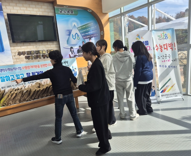 [뉴스앤톡] 봉화군청소년상담복지센터는 2026학년도 대학수학능력시험 수험생을 위해 예비소집일인 지난 12일 봉화고등학교에서 ‘수능 응원 아웃리치’를 진행했다.