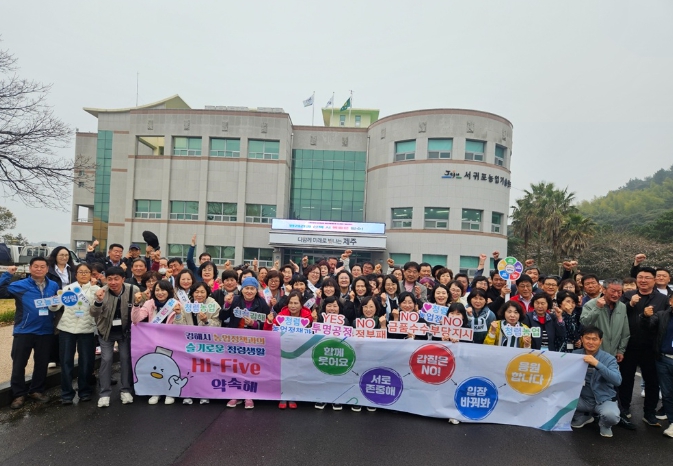 [뉴스앤톡] 김해시는 (사)한국후계농업경영인 김해시연합회와 함께 제주도에서 열린 전국대회에서 청렴 문화 확산을 위한 ‘Hi-Five 약속 청렴 캠페인’을 추진했다고 밝혔다.