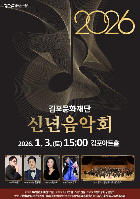 [뉴스앤톡] (재)김포문화재단이 새해 첫 무대로 내년 1월 3일 김포아트홀에서 '2026년 김포문화재단 신년 음악회'를 개최한다고 밝혔다.