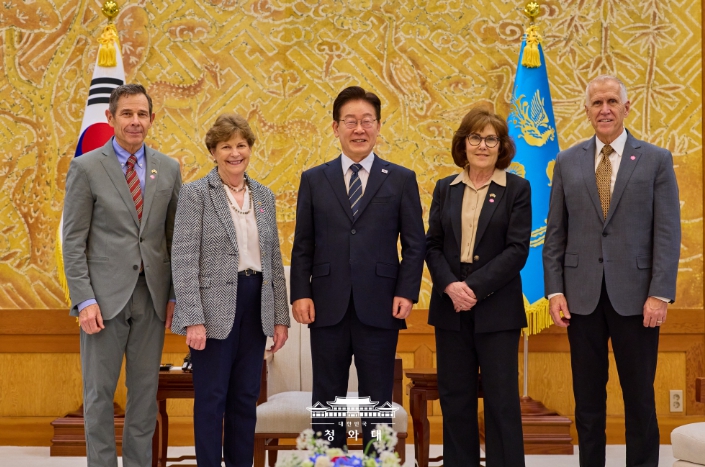 [뉴스앤톡] 이재명 대통령은 4월 2일 오후 청와대에서 진 섀힌(Jeanne Shaheen) 상원 외교위원회 간사 등 공화·민주 양당 의원으로 구성된 미국 상원의원 대표단을 접견했다. 이 대통령과 미 대표단은 한미동맹 및 한반도 문제를 비롯해 중동 전쟁의 안보적·경제적 파장과 대응 방안에 대해 심도 있는 의견을 교환하고, 향후 경제적 여파 대응 과정에서 한미가 긴밀히 소통해 나가는 것이 중요하다는 점에 뜻을 같이 했다.