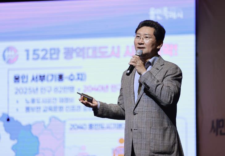 이 시장은 질문답변에 앞서 삼성·SK하이닉스 등의 초대형 반도체 프로젝트, 기업 유치 전망, 신도시 조성 도로·철도망 등 교통망 확충 등 용인의 미래 성장 전략과 함께 문화·교육·복지·체육 인프라 확대, 주거환경 개선 등 시민 삶의 질 항상과 직결된 일들에 대해 설명했다.