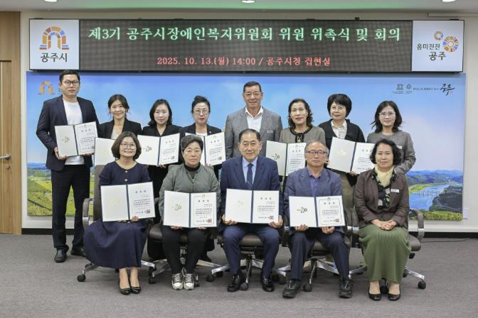 [뉴스앤톡] 공주시는 지난 13일 시청 집현실에서 ‘제3기 공주시 장애인복지위원회 위원 위촉식 및 회의’를 개최하고, 민관이 함께 장애인 정책 현안 해결에 나서기 위한 본격적인 활동을 시작했다고 밝혔다.