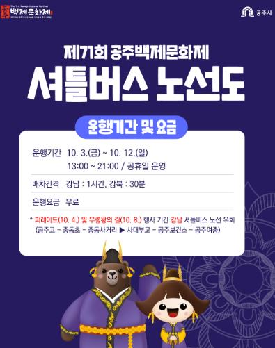 | ▲ 제71회 백제문화제, 무료 셔틀버스 이용하세요! |