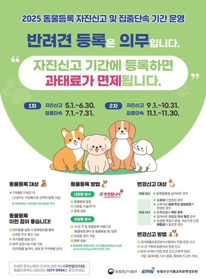 [뉴스앤톡] 전북특별자치도가 반려견 등록을 하지 않았거나 변경신고를 미처 하지 못한 보호자들을 위해 오는 9월 1일부터 10월 31일까지 ‘2025년 2차 동물등록 자진신고기간’을 운영한다. 이 기간에 신규 등록이나 변경신고를 하면 과태료가 면제된다.