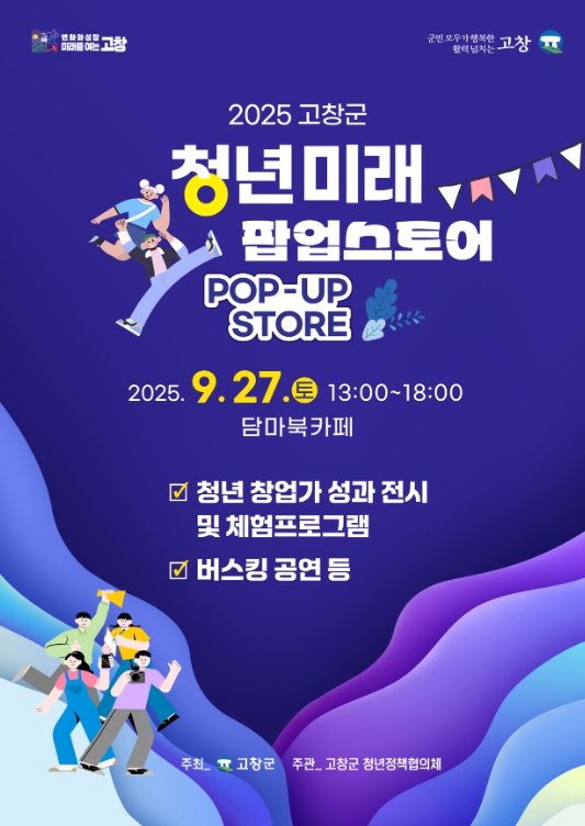 [뉴스앤톡] 고창군은 오는 9월27일 오후 1시부터 담마북카페에서 2025 청년의 날 기념행사 ‘청년미래 팝업스토어’를 연다.