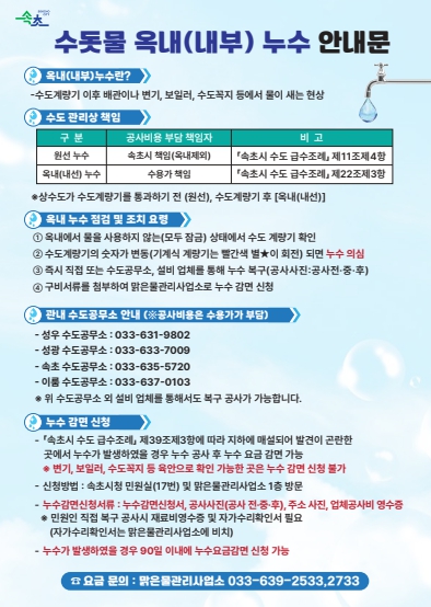 [뉴스앤톡] 속초시가 ‘수돗물 누수 안내문’을 제작·배포하며 생활 속 물 절약 실천 확산에 나섰다.