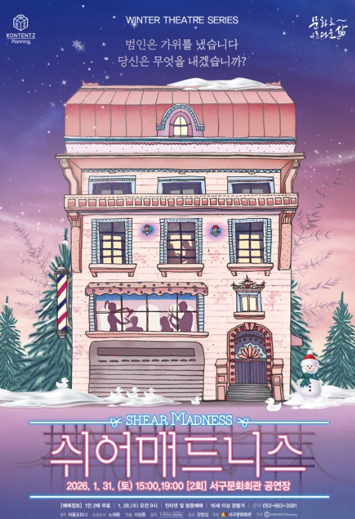 [뉴스앤톡] 서구문화회관은‘Winter Theatre Seires(겨울 연극 시리즈)’의 첫 번째 순서로 연극'쉬어매드니스'를 1월 31일 오후 3시, 7시 (2회) 무대에 올린다.