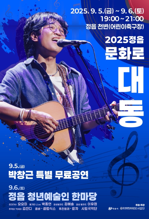 [뉴스앤톡] 정읍시가 오는 5일과 6일 저녁 7시부터 9시까지 정읍 천변 어린이 축구장에서 ‘2025 정읍 문화로 대동’ 행사를 개최한다.