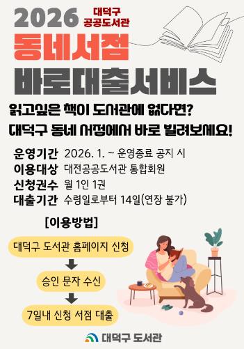 [뉴스앤톡] 대전 대덕구는 2026년 공공도서관 ‘동네서점 바로대출 서비스’를 운영한다고 밝혔다.