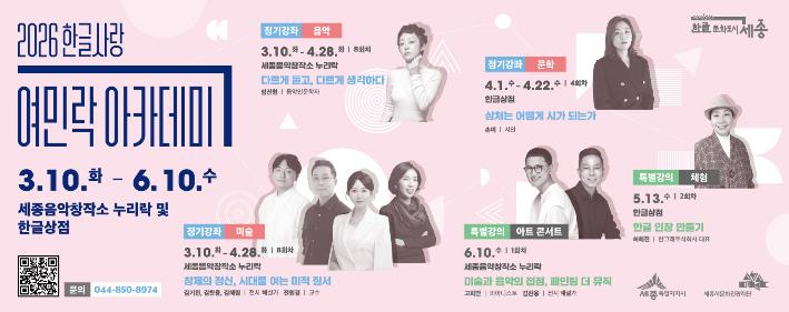[뉴스앤톡] 세종시문화관광재단이 2026년 한글사랑 여민락 아카데미’ 상반기 수강생을 선착순으로 모집한다.