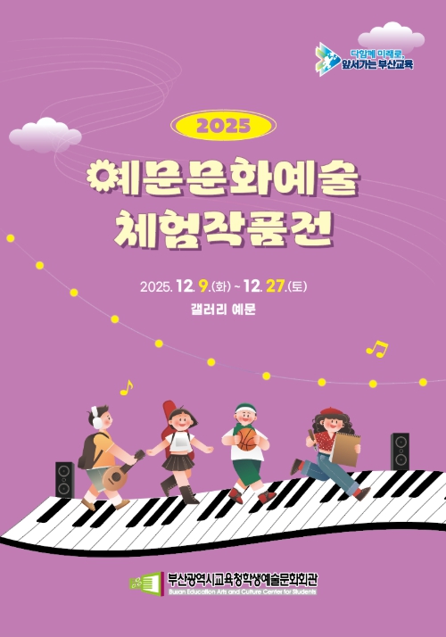 [뉴스앤톡] 부산광역시교육청 학생예술문화회관은 9일부터 27일까지 학생예술문화회관 갤러리 예문에서 ‘2025 예문문화예술체험작품전’을 개최한다.