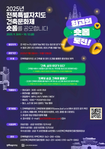 ▲ 제26회 전북특별자치도 건축문화제, 전북의 ‘美’를 숏폼에 담다! |
